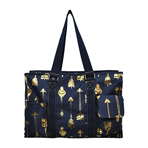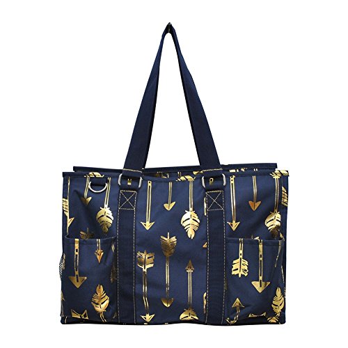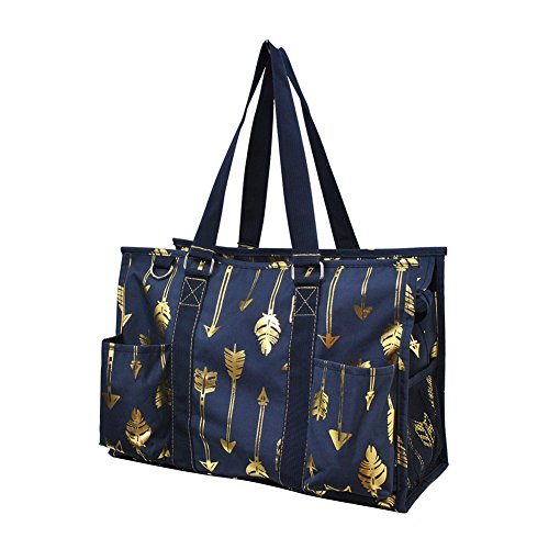 Product Description NGIL Brand. Double Canvas Handles for easy grip. Handle Drop 9½". Perfect for organizing and taking all the essentials anywhere with: 2 open front pockets, 1 rear open pockets 1 Velcro Closure Pocket, 2 side net pockets. Easy to clean interior and not too bulky with Dimensions of Approx. 15½"(L)x 6"(W)x 10"(H). The bag is Monogrammable so you can personalize it(We do not Monogram). 0