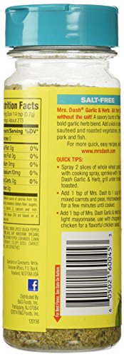 Mrs Dash Garlic & Herb Salt Free Blend, 6.75-ounce