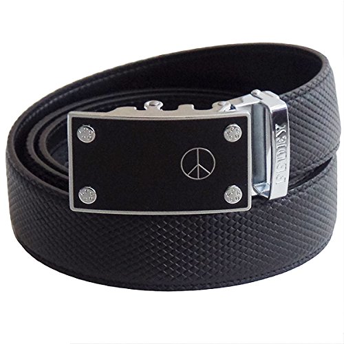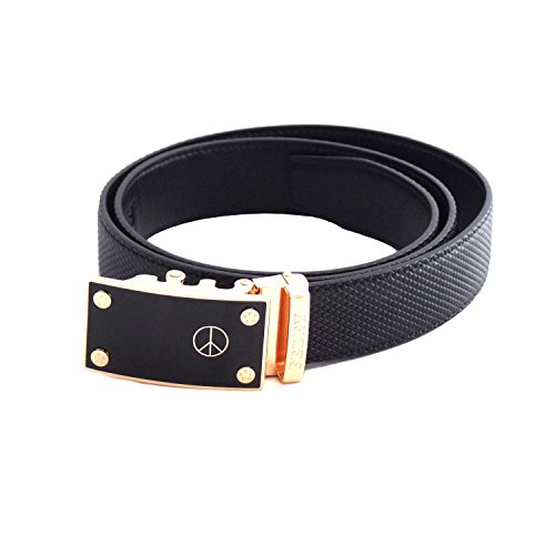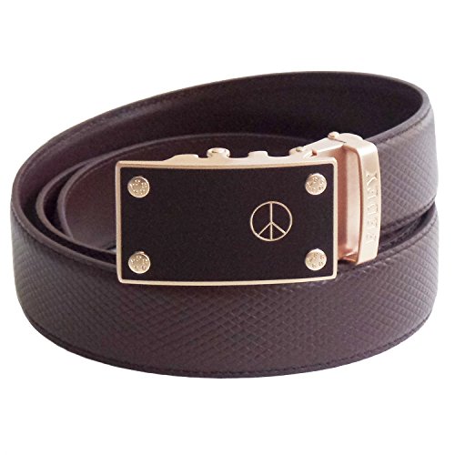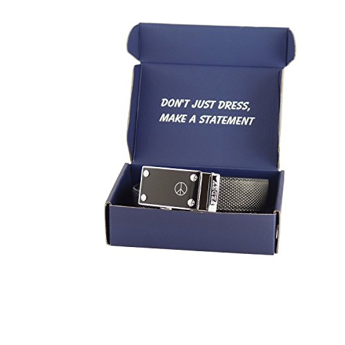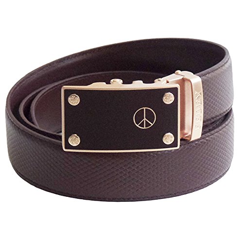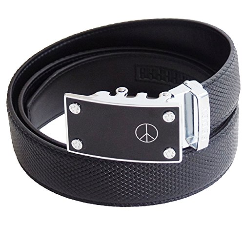Binding : Apparel Product Description Whether you are standing for Unity and Peace, looking for an item that represents who you are, or want to show your fashion style, our Statement Belt has you covered. It's affordable style that makes you standout. Our belts are easily adjustable and can be customized to fit with no pin holes to worry about. Made with genuine top grain leather, our belts are design with a ratchet style that offers 38 ¼" grooves so that you can easily positioned the belt to your perfect fit. Requiring no cutting in most cases, just choose from M (pants size up to 34), L (pants size up to 40) or XL (pants size up to 52) and enjoy worry free shopping with our 90 day satisfaction guarantee. All belts are packaged in a gift box and accompanied with a microfiber cleaning cloth. 0