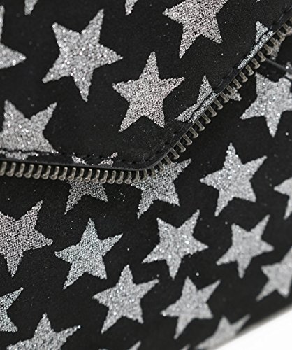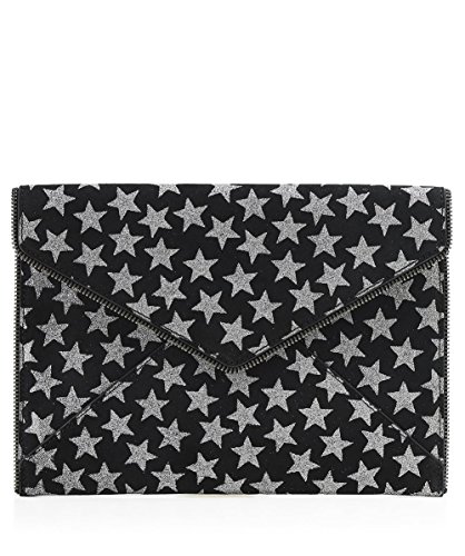 Rebecca Minkoff Women's Black Glitter Star Leo Clutch, Black, One Size
