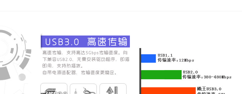 Brand: SSK / Biao Wang Model: SHU028 Interface properties: USB expansion HUB Length: 0.6m Whether the external power supply: external power supply Item No: HU028I0