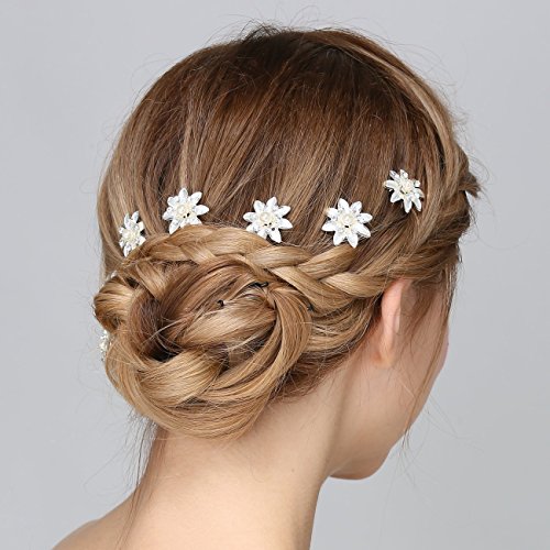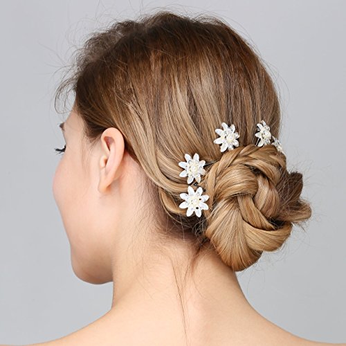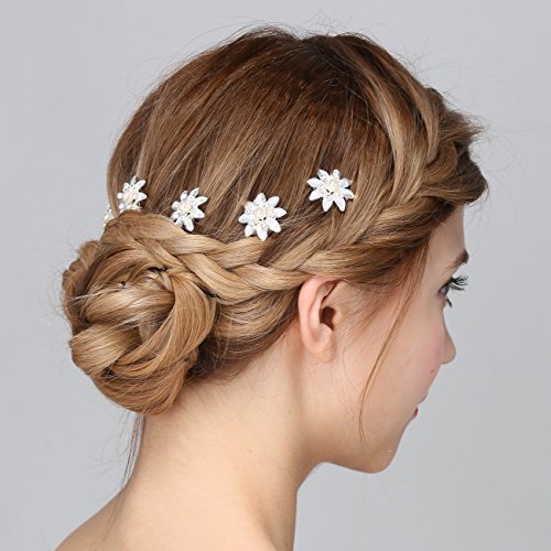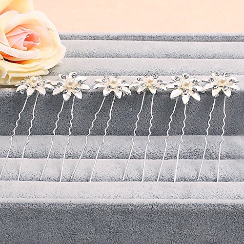Handmade wedding bridal 6pcs Ivory flower women hair pins headpiece rhinestone simulated pearl well for loved ones, lover, girlfriend, fiancee, wife, mother, couple, Valentine, bridesmaid