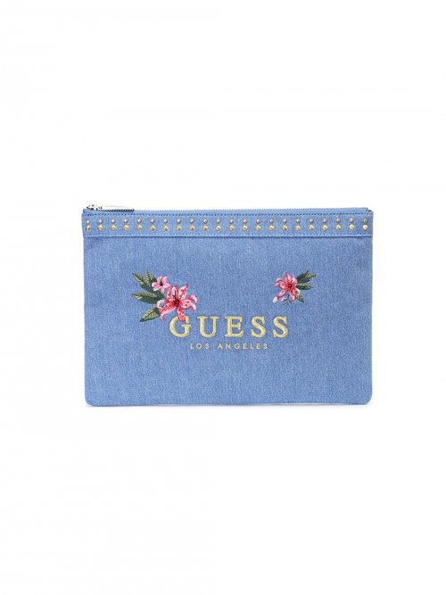게스(GUESS) 플라워비드 골드자수 클러치
