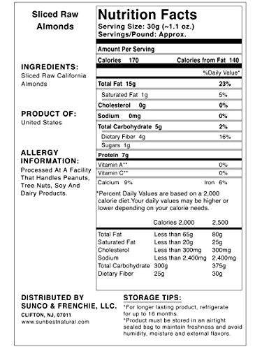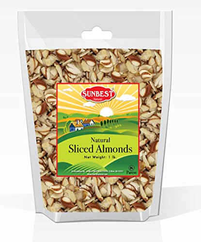 - SUNBEST 1 lb Sliced, Unsalted, Raw Almonds in Resealable Bag
