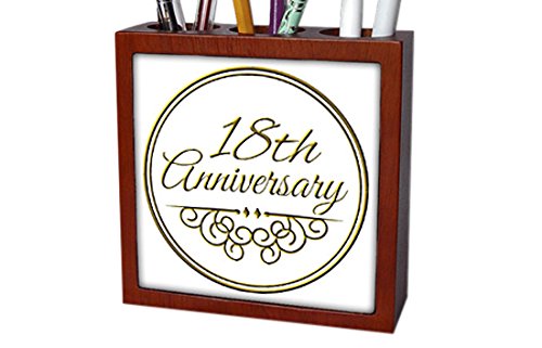 3dRose ph_154460_1 18th Anniversary Gift Gold Text for Celebrating Wedding Anniversaries 18 Years Married Together Tile Pen Holder, 5"