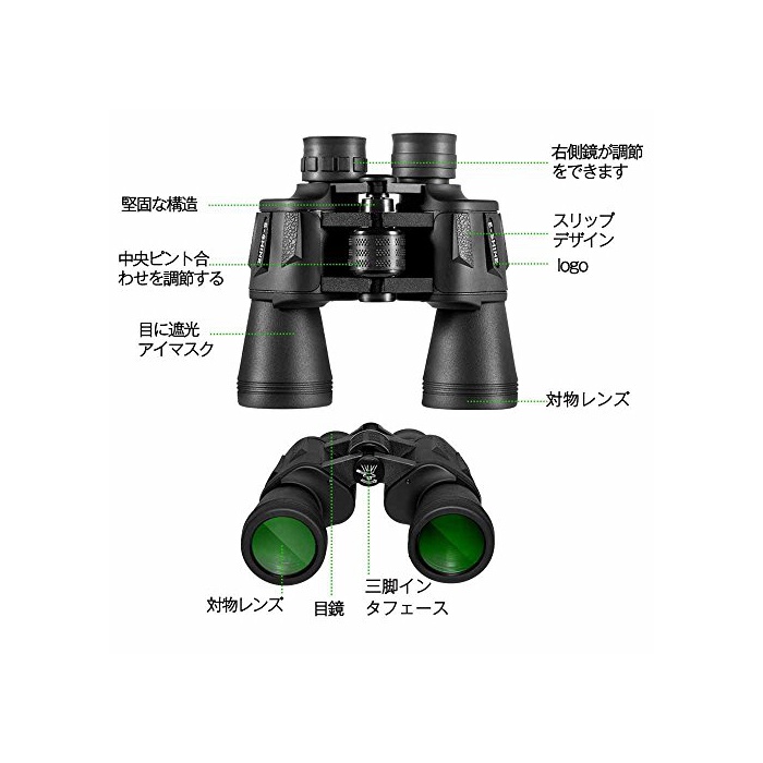 【세부로도 감동 된】1/4센티의 삼각과 연속 구멍도 있고, 손으로 들지 않아도 상관하지 않는다,소지로는 보여 어려운 세부까지 관찰로 옵니다.중앙 포커스를 조정하고, 쌍안경의 punt와 길이가 끌리고, 오른쪽 눈 포커스를 사용하면,눈(째)폭도 조정에 옵니다.전신은 금속의 구조에,외부에 양질의 고무에 포장에 있고, 위에 수개의 미끄럼방지조가 서서,수손잡이 기분은 매우 나아집니다.사이즈(길이*길이*높음):110X190X175mm,무게:810g,수납대와 스트랩도 있고, 운반 쉽습니다.일본어의 설명서도 있고, 자세하게 설명에 옵니다.