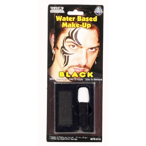 -. Binding : Toy -. Brand : Wolfe Face Art & Fx -. EAN : 0856408000582 -. Feature : Wolfe make-up kit / Single-color black pack / Comes with applicator sponge / 0.3 oz -. Label : Wolfe Face Art & Fx -. LegalDisclaimer : Adult Supervision required under the age of 8 -. Manufacturer : Wolfe Face Art & Fx -. MPN : WPE-010 -. PackageQuantity : 1 -. PartNumber : WPE-010 -. ProductGroup : Toy -. ProductTypeName : TOYS_AND_GAMES -. Publisher : Wolfe Face Art & Fx -. Studio : Wolfe Face Art & Fx -. Title : Black Water Based Make-Up -. UPC : 856408000582