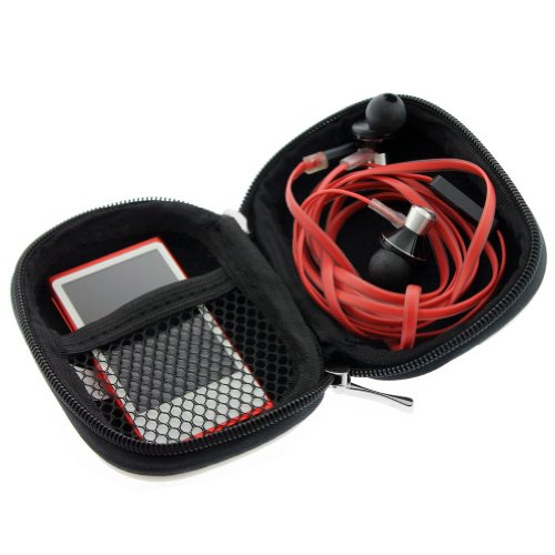 - Feature : Brand new Stylish & high quality foam Eva case Holds any pair of compact earbuds and MP3 Device / Smooth, non-scratch lining interior protect your earbuds, Interior mesh pocket to hold your small MP3 Device / Prevents damage or scratch to your MP3 Device from objects in your pockets or purse / Able to fit object size up to 3.25 x 2.00 x 1.00 inch (83mm x 50mm x 25mm) or smaller / Removable Belt clip hook to attach to your bag for easy storage and carrying. MP3 and Headset are not included