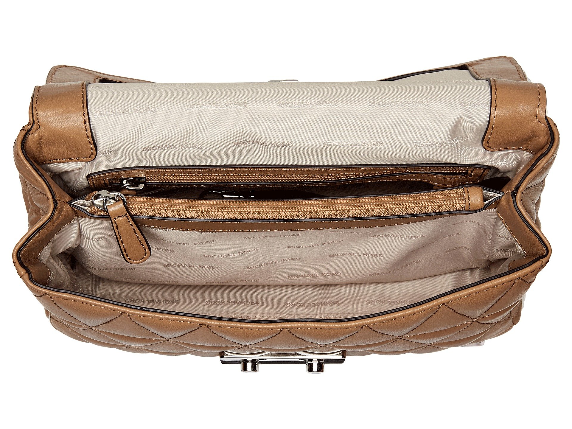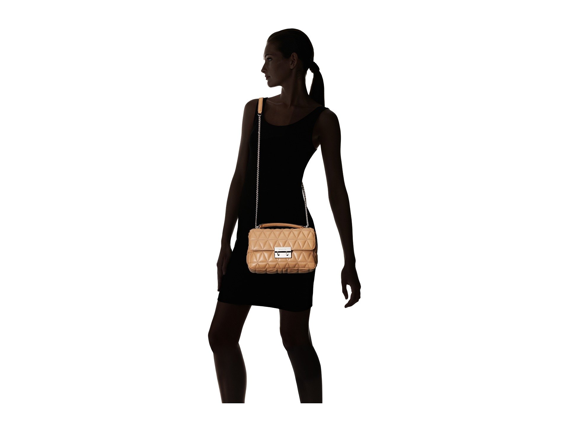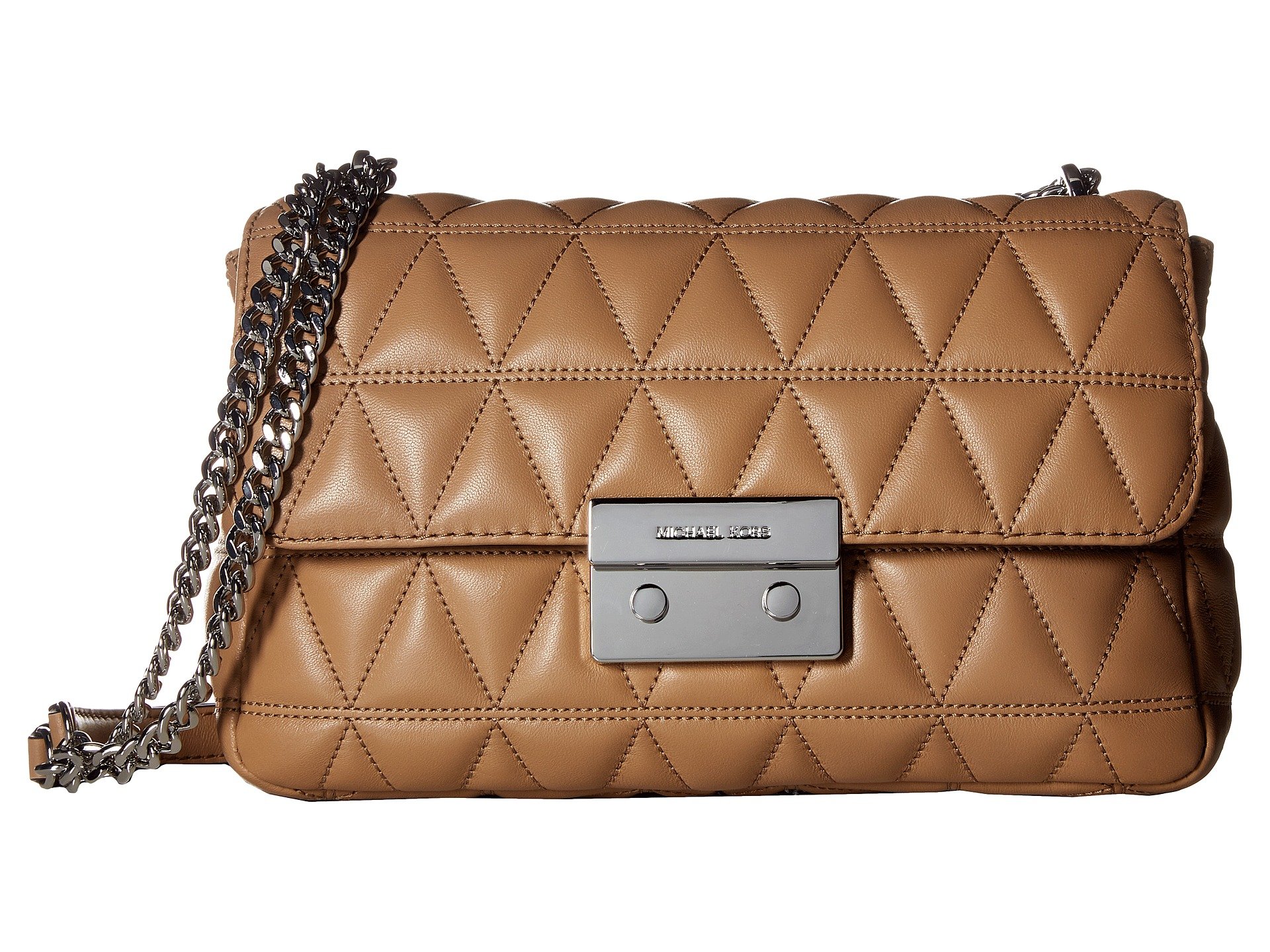 | Product Information SKU: #8902939Carry all your travel essentials in the beautiful Sloan Large Chain Shoulder bag from MICHAEL Michael Kors™. Made of quilted leather.Push button lock closure with logo.Leather and chain shoulder strap.One exterior slip pocket.Signature logo engraved hardware detail in front.Flat bottom with quilted detail.Custom woven lined interior features one zip pocket, two slip pockets and four card holders.Imported.This product may have a manufacturer's warranty. Please visit the manufacturer's website or contact us at warranty@support.zappos.com for full manufacturer warranty details.Please note, the hardware color and interior lining may differ from the color shown in the photo.Measurements: Bottom Width: 10 1?4 in Depth: 3 1?2 in Height: 5 3?4 in Strap Length: 27 in Strap Drop: 11 3?4 in Weight: 1 lb 5.5 oz |