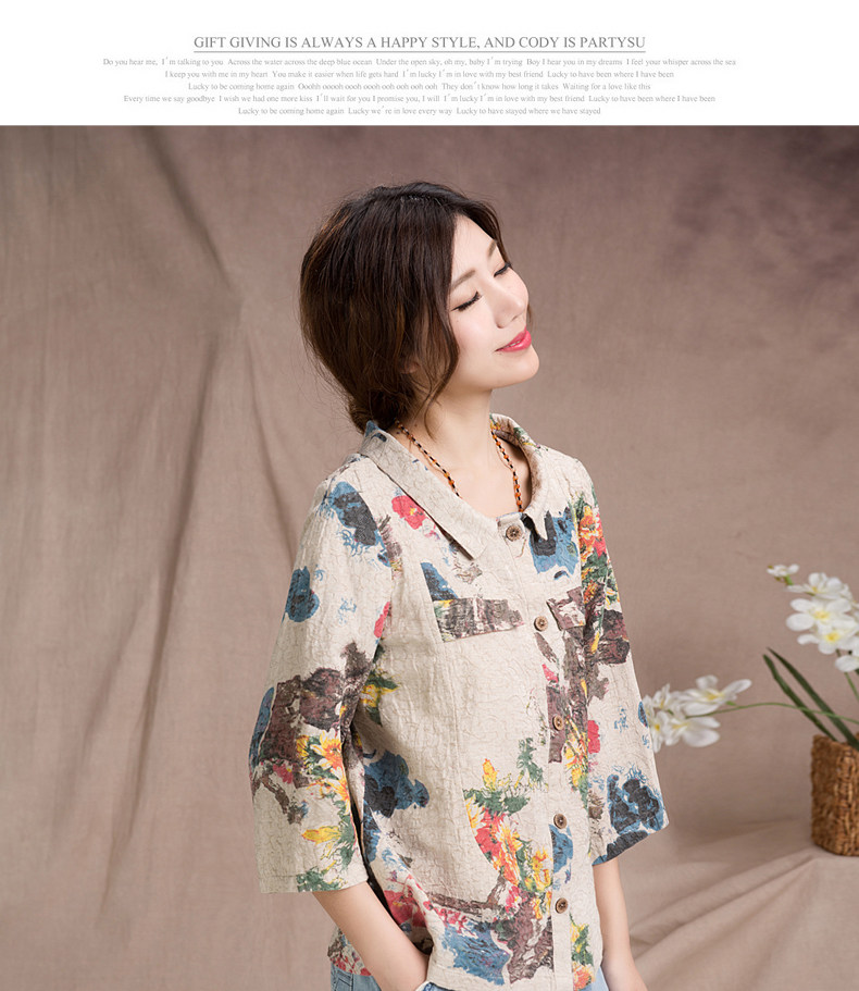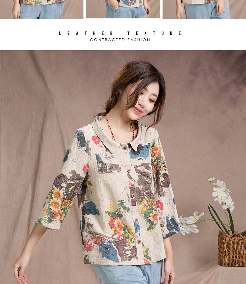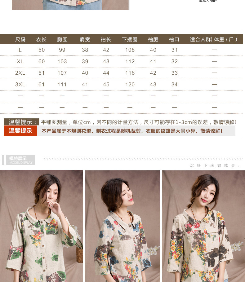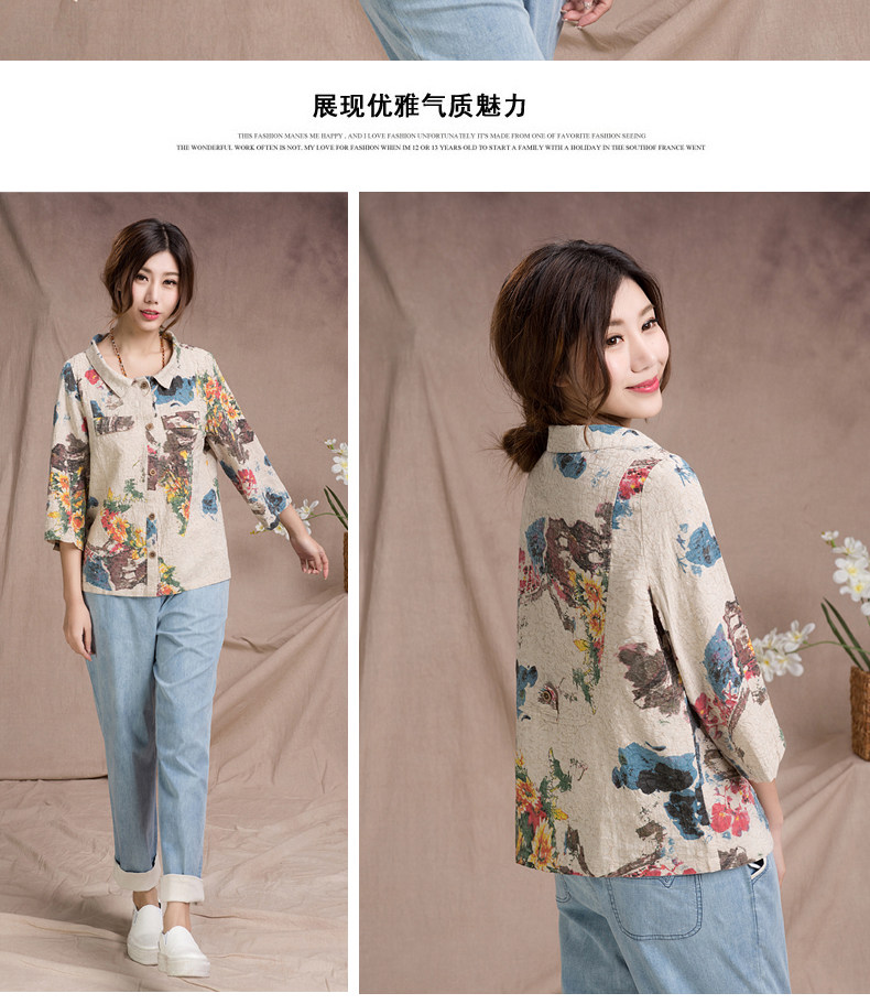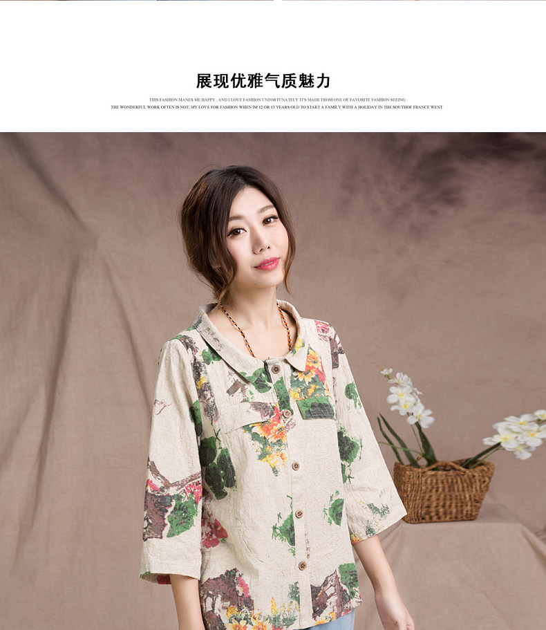 中老年妈妈装春装新品大码宽松上衣妈妈装衬衫七分袖棉麻外套