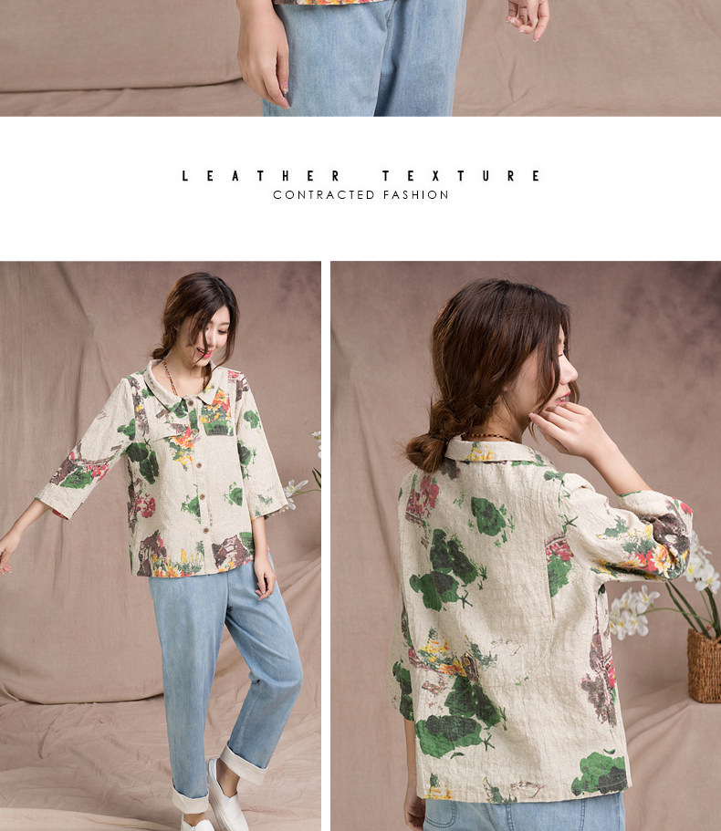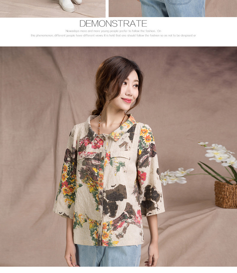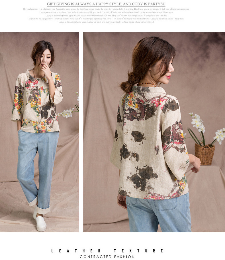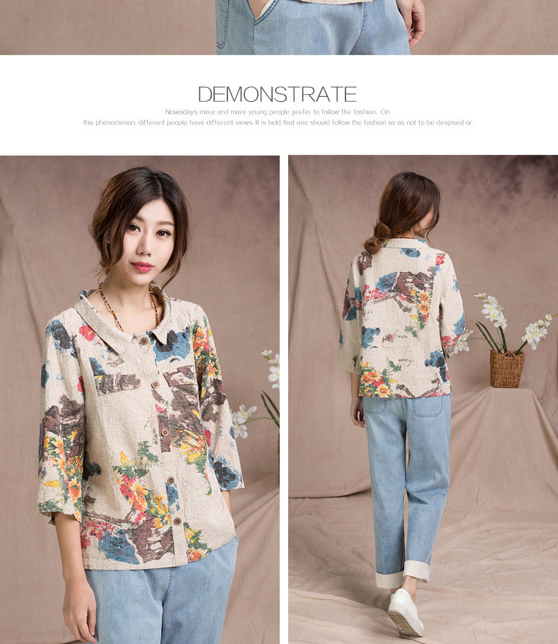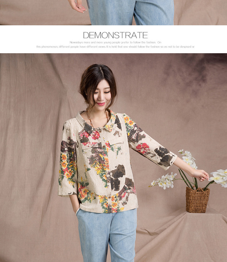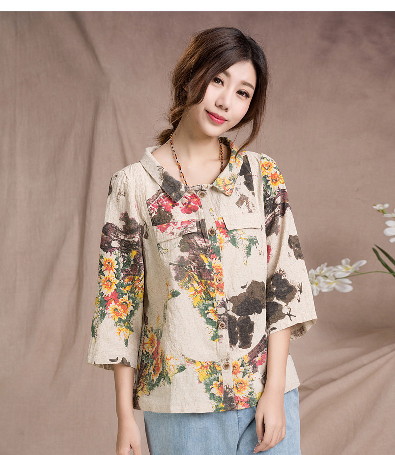 中老年妈妈装春装新品大码宽松上衣妈妈装衬衫七分袖棉麻外套