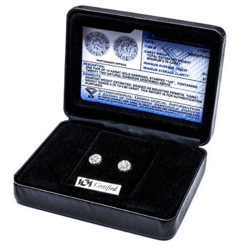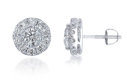 -. Title : Diamond Studs Forever 3/4 Ctw Diamond Halo Earrings IGI USA Certified Screw Backs GH/I1 14K White Gold