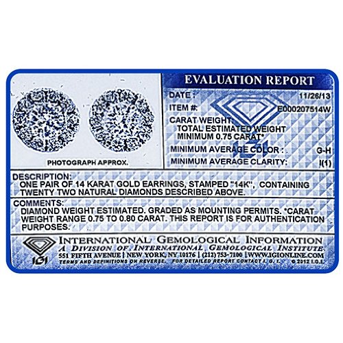 -. Feature : Made in USA / 100% Conflict Free Natural Diamonds / IGI USA Certified / Solid 14K White Gold / I1 Clarity, G-H Color