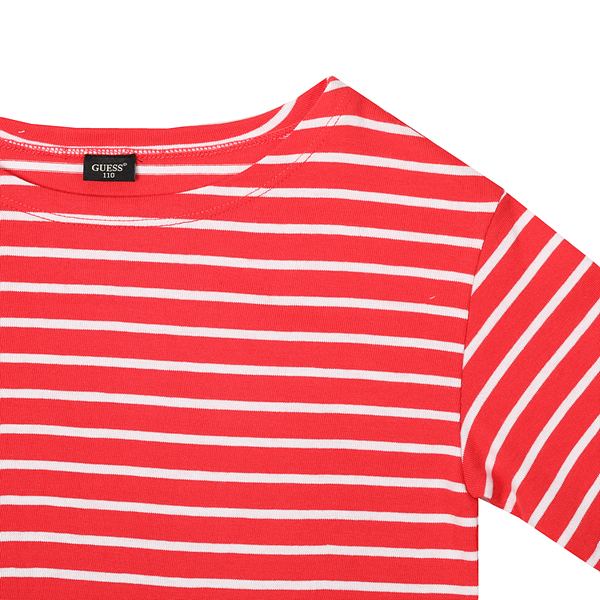 레드, 멜란그레이, 네이비 세가지 컬러로 구성된 티셔츠입니다. - 기본티에서 살짝 변형된 핏으로 트렌디하게 입으실 수 있습니다. 소매의 라벨 장식으로 포인트를 주었습니다. 기본 스트라이프 패턴을 사용하여 다양한 하의에 깔끔하게 매칭하기에 좋습니다.