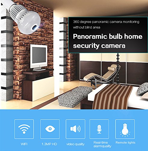 Aibole Indoor wireless Camera 360 degree Wireless Camera Panoramic Camera Smart LED Bulb Camera Night Motion Detection TF Slot ,Home Security System With Real Time Monitoring And Intercom.(White)