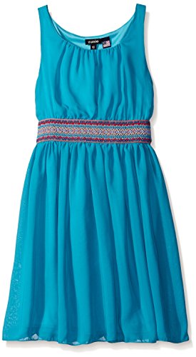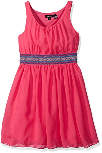 Sleeveless solid chiffon dress with Aztec printed elastic waistband