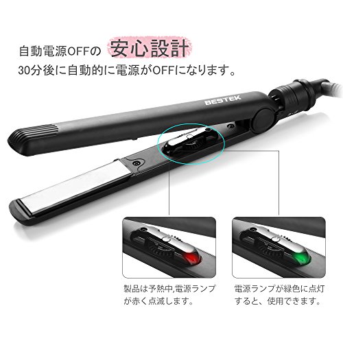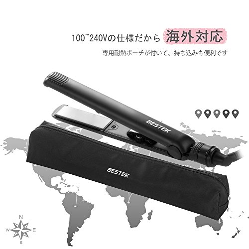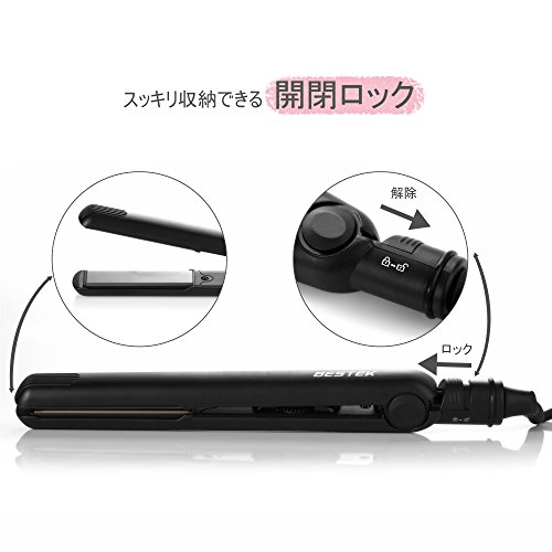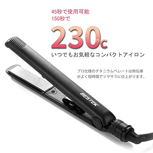 BESTEK 스트레이트 아이런 헤어 아이런 마이너스 이온 티타늄 플레이트 프로 사양230℃ 급속 가열 온도 설정 가능 자동 전원OFF 개폐 록 360도 회전 전원 코드 반입해 편이해외 대응 블랙