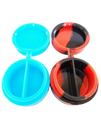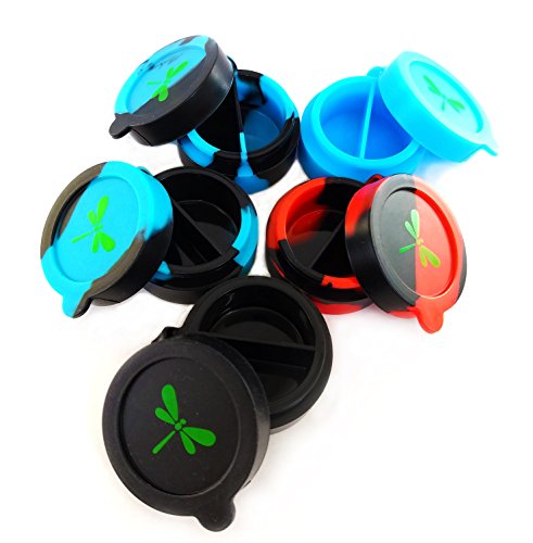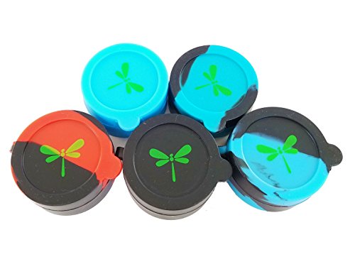 Dragon Fly Essentials Pack of 5 Assorted Colors of NonStick Silicone Dab Containers and Concentrated Wax Container. Flip-Top, Dual Compartment, Store Multiple Flavors of Oil and Wax Concentrate.