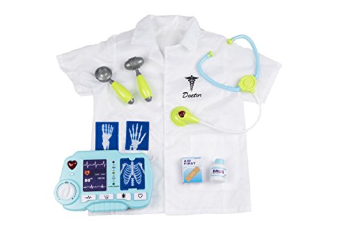 -. Feature : HEALTHKIT PLAY THAT'S EDUCATIONAL: Girls and boys don't know they're learning - they're too busy having fun with this toy doctor kit and kids lab coat. Play doctor with this doctor costume ( white coat )included / EVERYTHING YOUR KIDS DOCTOR NEEDS: Includes all doctor tools a doctor set needs - including doctor dress (kids lab coat), which other sets make you purchase separately. / DOCTOR FOR KIDS: This doctor kit has plenty of BPA-Free plastic toys to choose from so they'll never run out of things to do. Before you know it, they'll be performing pretend operations on mom and dad. / THE MOST COMPLETE KIDS DOCTOR SET AVAILABLE: In addition to the lab coat, you receive a working x-ray machine, 2 AA batteries, a stethoscope, an ear scope, a bottle of pretend medication and several x-ray cards. / 100% SATISFACTION GUARANTEED: We're confident that your child will love their new play set. If you're not completely satisfied with your purchase, we'll give you 120% of your money back.