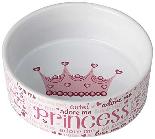 Studio : Pet Rageous Designs, LLC Publisher : Pet Rageous Designs, LLC Binding : Misc. Product Description PetRageous Designs, Lila's PRINCESS 5" Pink/White bowl has a 2 cups capacity. This bowl features a collage of fun sayings on the exterior including “PRINCESS”, “Adore Me”, “love me” and more. The interior of the bowl is white with a pink crown design in the basin. Dimensions are 5”L x 5”W x 2”H. 0