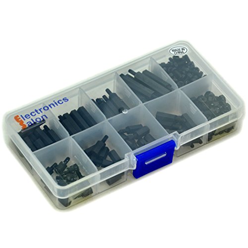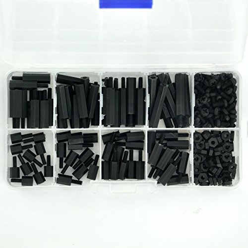 Electronics-Salon M2.5 Black Nylon Hex M-F Spacer/Screw/Nut Assorted Kit, for Raspberry-Pi, Standoff.