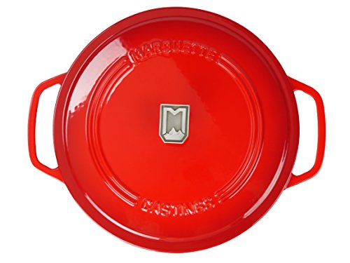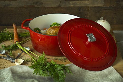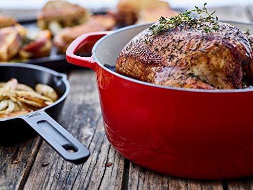 This gorgeous cast iron Dutch oven is the perfect addition to your cookware collection. It's great for stovetop, oven, searing, simmering, baking and so much more! Our design is based on exhaustive research of the leading Dutch ovens and our piece incorporates all of the best elements. With a large diameter at 10 5/8" this Dutch oven has all the space you need to create meals of all sizes. The light colored high gloss interior makes it easy to clean and care for and the large loop handles are easy to grip with oven mitts. The heavy duty lid has an optimized fit to allow for a precise amount of evaporation and is complete with a unique polished stainless steel lid pull. It's one of the lightest 6-quart Dutch ovens available at 13.8 pounds and has a totally flat bottom for improved use on induction ranges and glass tops. Oven safe up to 500 degrees Fahrenheit, hand wash only and it comes with a lifetime warranty! More colors coming soon! Reach out to our customer service team if you have any questions or concerns with your Dutch oven.Feature