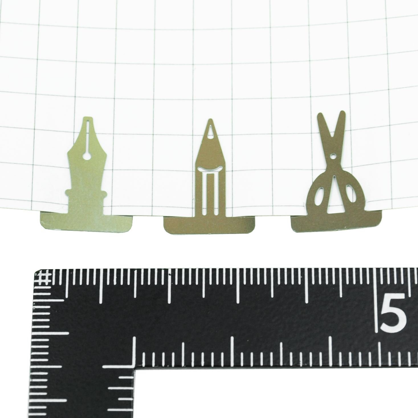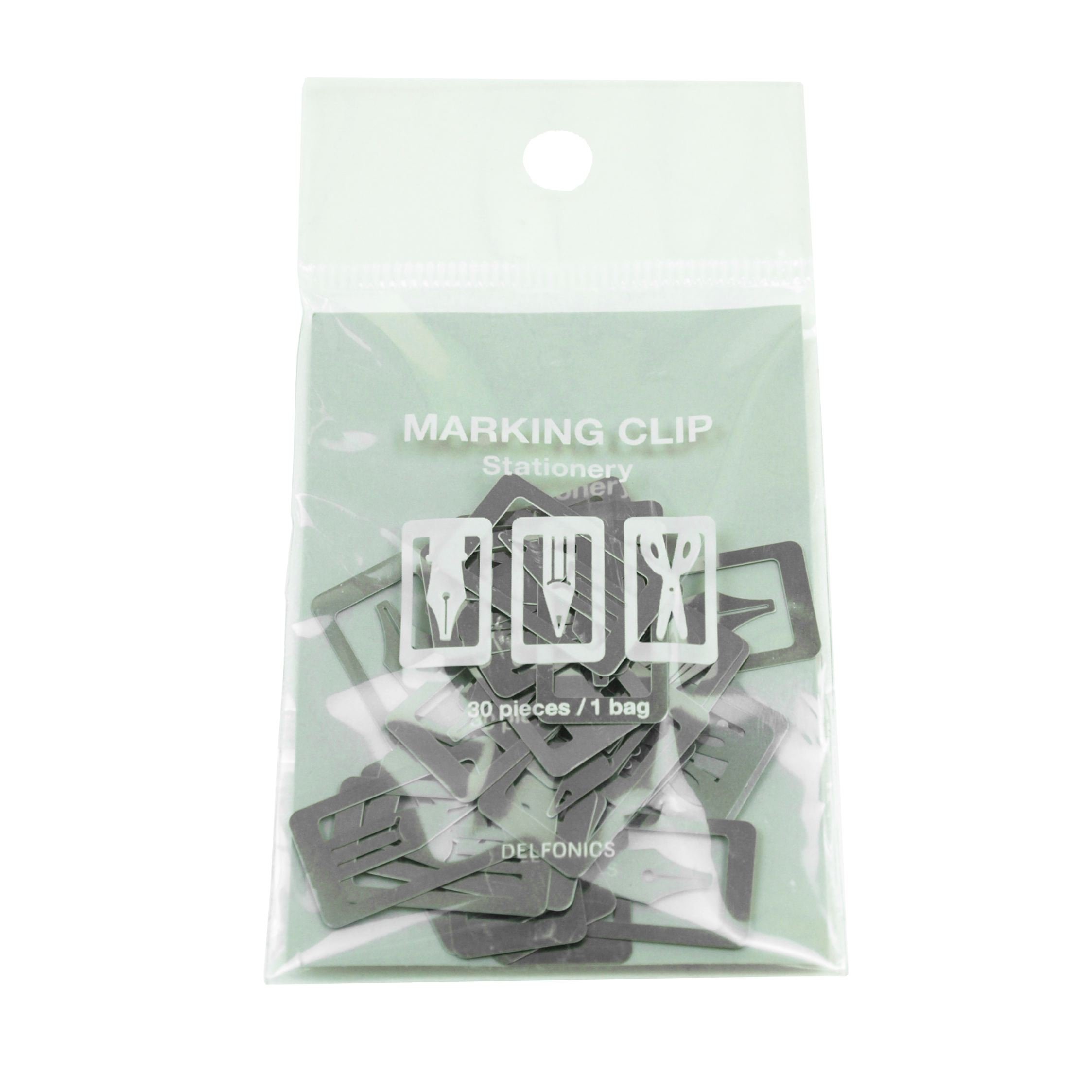 There are ten clips each in the shape of a fountain pen (pen tip), pencil (pen tip), scissors, 30 each in total.