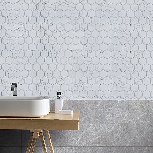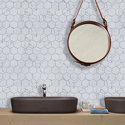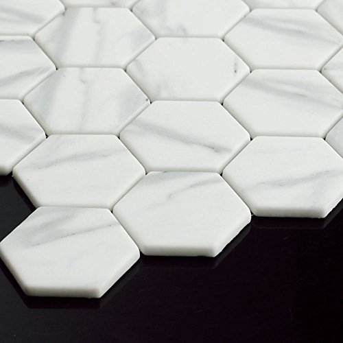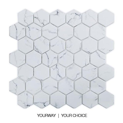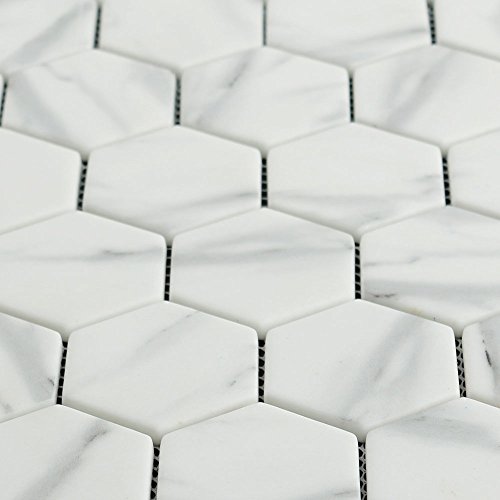 2018New Fashion Inkjet Printing Hexagon Staturio Recycled Glass Mosaic Tiles for Backplashes Wall Bathroom Kitchen at Home Restaurant (12''12'', 6 pack in box ,6 SQF per box)