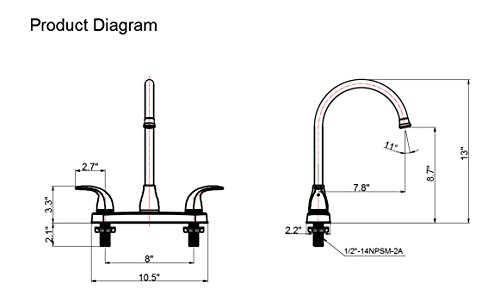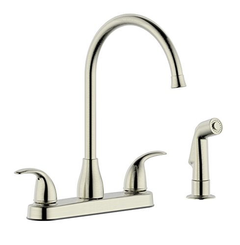 Derengge KFW8303 8" Two Handle Kitchen Faucet with Contemporary Side Spray,Meets with cUPC NSF61-9 and AB1953 Lead Free Standard, Stainless Steel