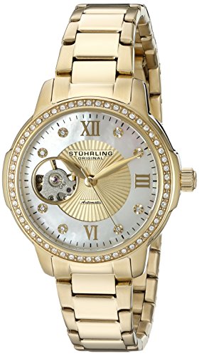 -. Binding : Watch -. Brand : Stuhrling Original -. Color : Gold tone/MOP -. Department : womens -. EAN : 0847988083690 -. Feature : Stainless steel gold tone round case with crystal filled bezel on a gold tone stainless steel link bracelet / Mother-of-pearl outer dial with open heart at 9:00 position, roman numerals and crystal markers / Automatic-self-wind Movement / Case Diameter: 36.5mm / Water Resistant To 165 Feet -. Label : Stuhrling Original -. Manufacturer : Stuhrling Original -. Model : 491.04 -. MPN : 491.04 -. PackageQuantity : 1 -. PartNumber : 491.04 -. ProductGroup : Watch -. ProductTypeName : WATCH -. Publisher : Stuhrling Original -. Size : Standard -. Studio : Stuhrling Original -. Title : Stuhrling Original Women's 491.04 Legacy Analog Display Automatic Self Wind Gold Watch -. UPC : 847988083690 -. Warranty : Manufacturer
