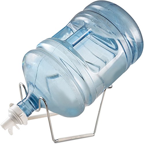 -. Feature : Water stand and valve perfect for consistently having accessible water, ideal for sturdy counter water dispenser taking up minimal space on countertop, replaces small electric water coolers, use the white spigot by pinching the two tabs / Water dispenser stand is made of plated steel, featuring removable plastic grips for stability and scratch protection, strong and stable water jug stand supports 2, 3, 5 gallon water jugs securely / Water spout easy efficient way for dispensing from reusable plastic water bottles, water cooler spigot has super fast flow rate, water valve fits 55MM Crown Top water bottles only, NOT FOR SCREW TOPS! / Reusable water stand and dispenser spigot is a great tabletop water dispenser for indoor, outdoor, parties, picnics or camping use / Using it provides a fast, clean, efficient way to dispense from water bottles