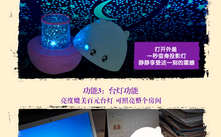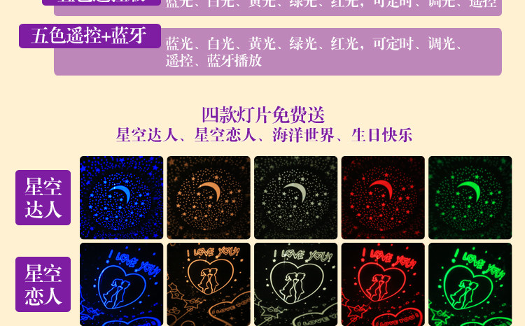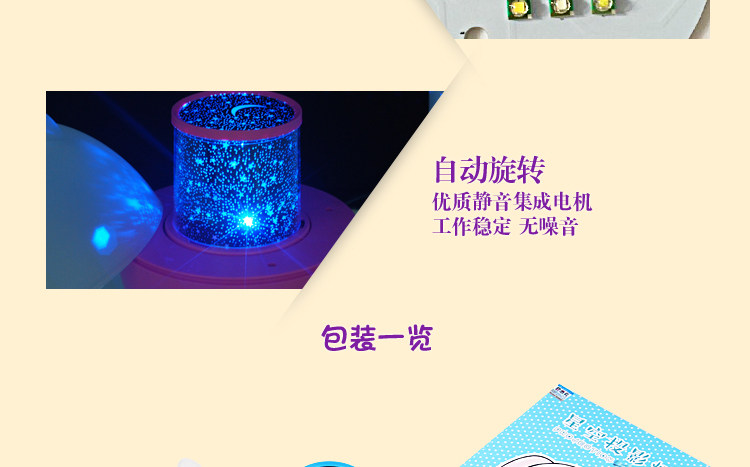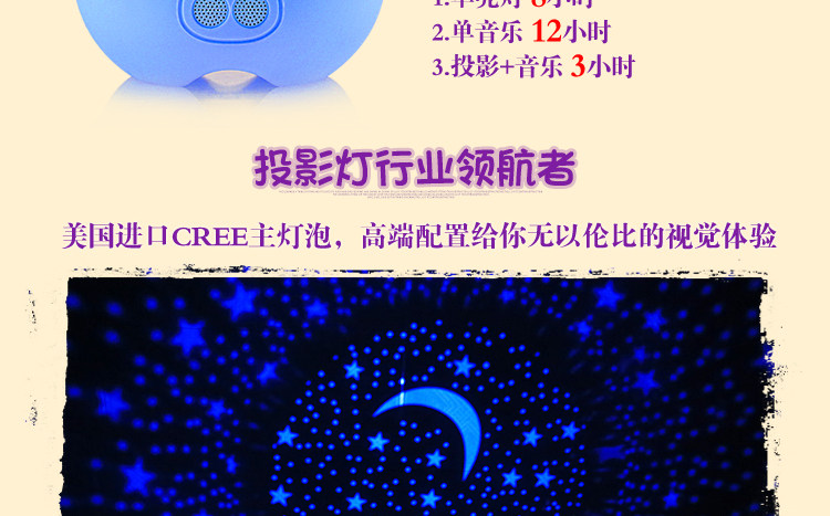 Comes with speakers, one second change lamp, a key dimming, time off, rotation, during the day can see the projector, remote control, HD light film imports, imports CREE bulb, 45MM oversized cooling version