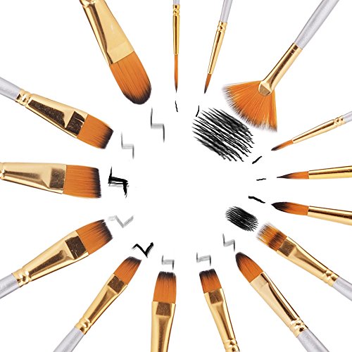 - MULTIPLE USAGE & HIGH QUALITY: Paint Brushes for acrylic painting, watercolor, oil, gouache. Clamped with extra strong metal ferrules, so synthetic hair brush will not deflect or spread while painting. Focus on the artistic creation without any use problems.