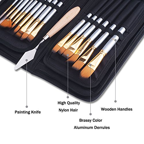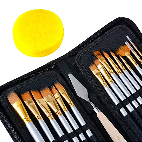 Paint Brush Set, LEOKOR 15 Pcs/Set Art Acrylic Oil Watercolor Face Painting Artist Paint Brushes with Mixing Knife and Sponge for Kids & Adults
