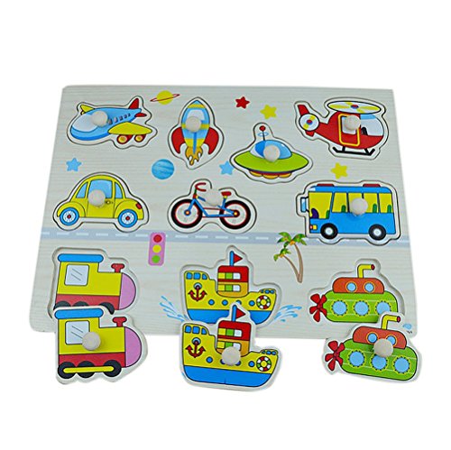 -. Title : Remeehi Wooden Peg Puzzles Vehicle Jigsaw Puzzles Educational Toys for Toddlers