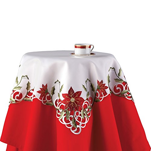 -. Title : Embroidered Christmas Poinsettia Table Linens