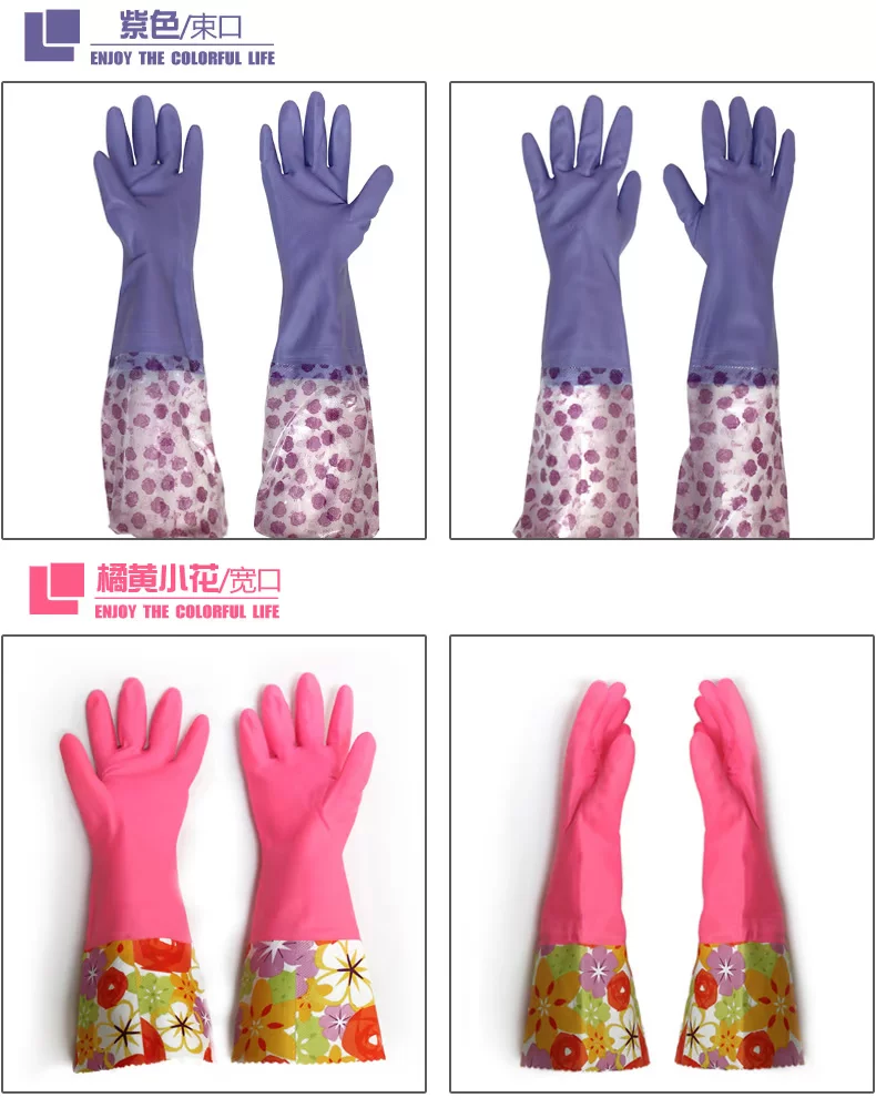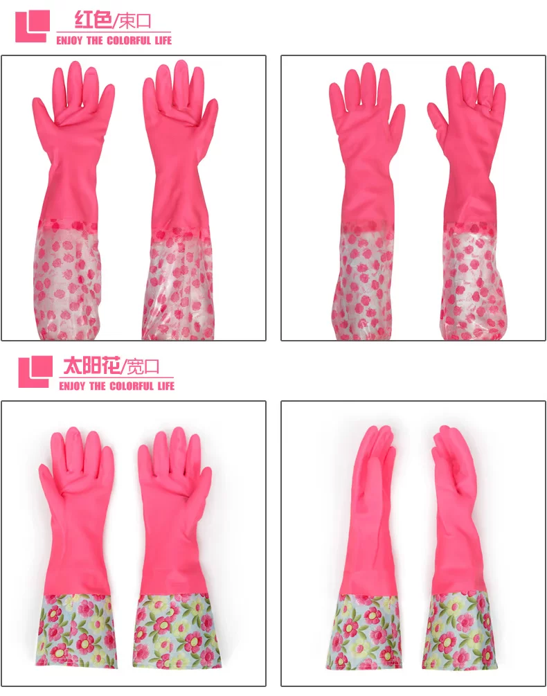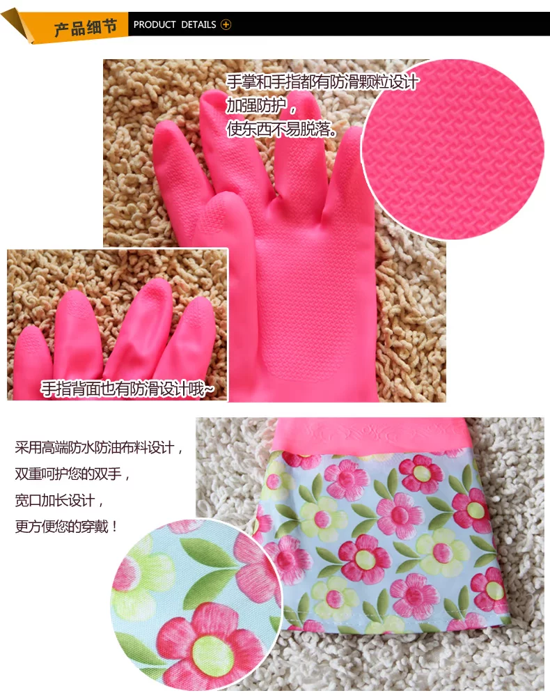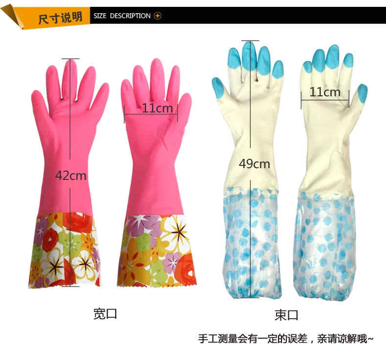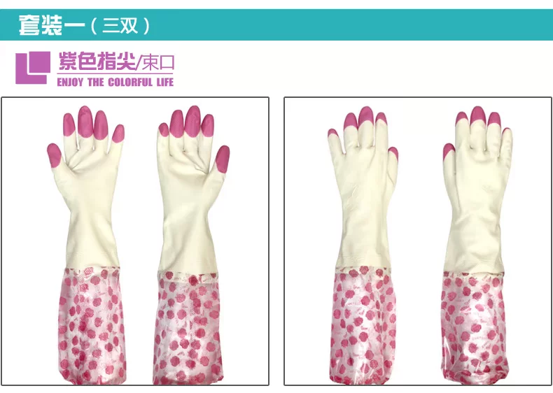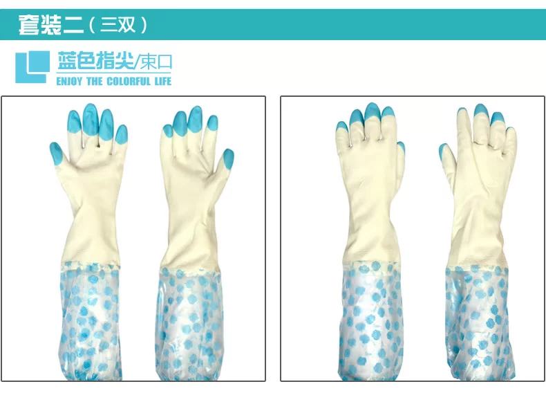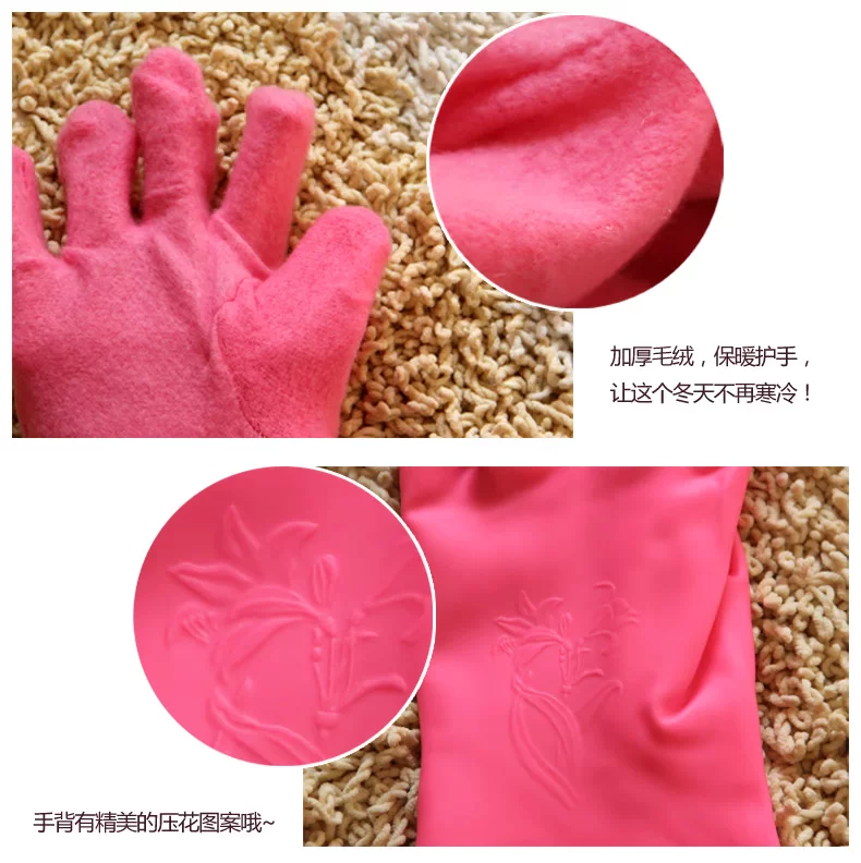 每时美家 防水加绒护手洗碗洗衣乳胶手套三件套 加厚家务橡胶手套