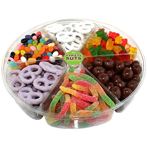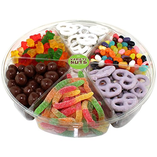 -. Feature : Delicious and Fresh Bundle of Candy, Gummies & Pretzels / Platter Includes: Blueberry Pretzels, Gummy Bears, Chocolate Covered Peanuts, Yogurt Pretzels, Sour Gummy Worms & Jelly Beans / Perfect Gift for Any Occasion. / Great Assortment For Anyone To Taste and Enjoy. / Variety Nuts by Custom Varietea - OK Kosher Certified.
