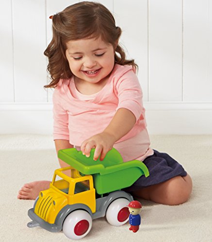 Pick up and haul the toys, dirt and sand away with this sturdy 8 inch dump truck! Includes removable figure to spur imaginative play. All pieces are made of chunky plastic, perfect for ages 1+.