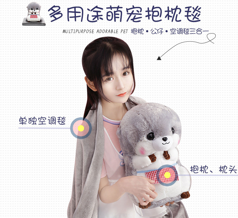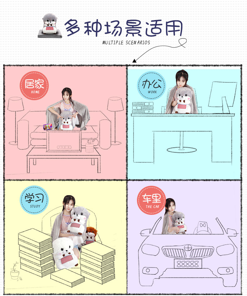 󰄬博美抱枕被子两用靠垫被沙发办公室午休靠枕头被汽车多功能空调毯