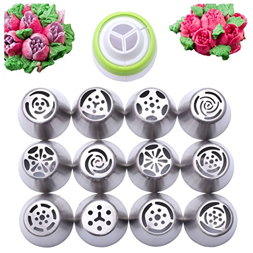12 Piece Stainless Steel Flower Russian Icing Piping Nozzles Tips each Piping Nozzles Tips will make a specific kind of flower. Unlike regular Russian Icing Piping Nozzles Tips that just have holes 304 Stainless Steel FDA Certified dishwasher safe for kid to use Piping Nozzles Tips Nozzles Tips Package including: Piping Tips Size:37*42mm Total 12 Piece in a color box Pls cleaning Piping Nozzles Tips before using Wash the nozzle in hot water After use wash in hot soap water and dry must clean the end of the Nozzles Tips 0
