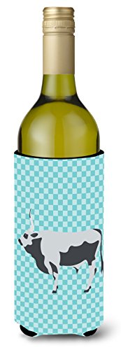 Caroline's Treasures BB7998LITERK Hungarian Grey Steppe Cow Blue Check Decorative Bottle Hugger, 750 ml, Multicolor