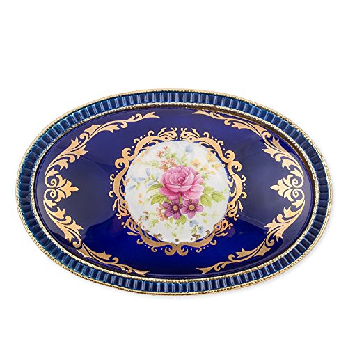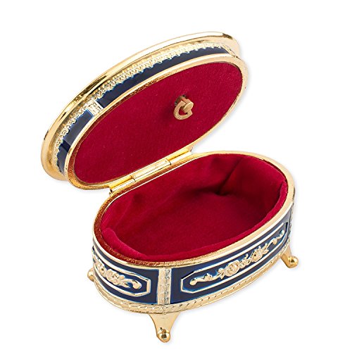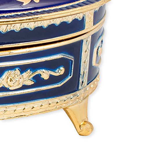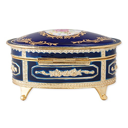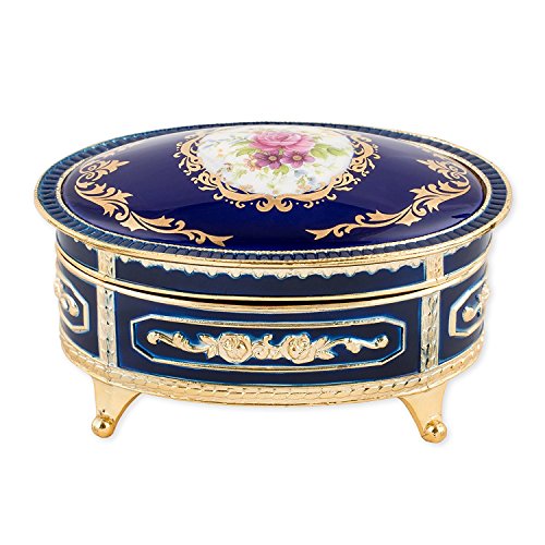 Floral Blue with Gold Accent Oval Metal Jewelry Music Box Plays Somewhere Out There