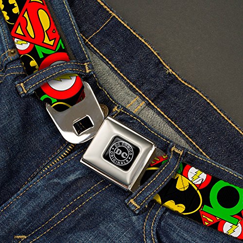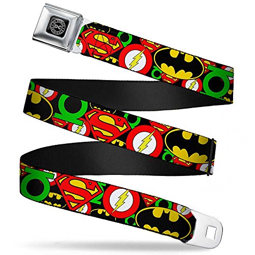 Dc Originals Black Silver Justice League Stacked Logos Webbing Seatbelt Seatbelt Belt Kids