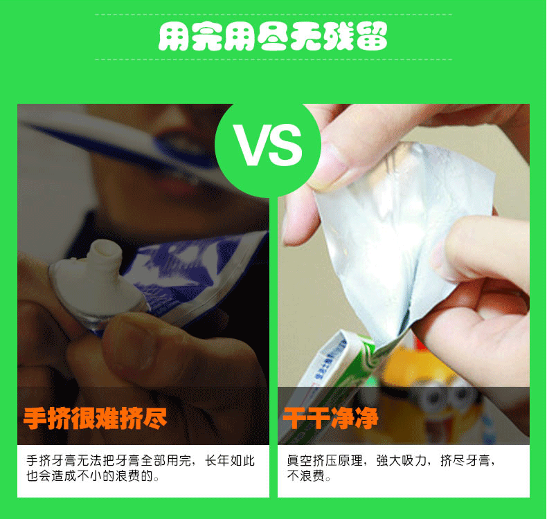 It is best to use the new toothpaste, if you want to use the old toothpaste, the first toothpaste to the top of the toothpaste to the mouth of the mouth do not have air into the inside of the suction port. Pick up the toothbrush to the toothbrush head on the pressure bar to push out to take out this product is to promote the depth of toothbrush toothpaste extrusion volume!