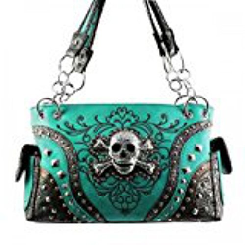 Concealed Handgun Carrying Western w/Rhinestone Skull and Crossbones Handbag PURSE - TURQUOISE
