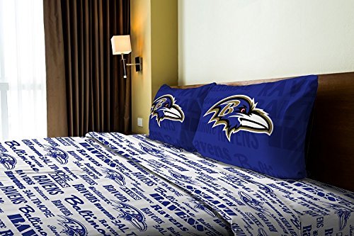 Baltimore Ravens - Full Size - Team Colored Anthem Sheet Set - Set Includes: (1 Full Size Flat Sheet, 1 Full Size Fitted Sheet, 2 Pillow Cases) SAVE BIG ON BUNDLING!