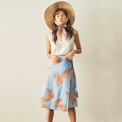 스카이팜 린넨 랩 스커트