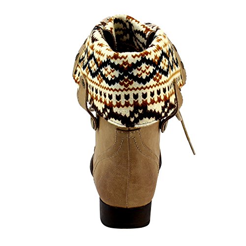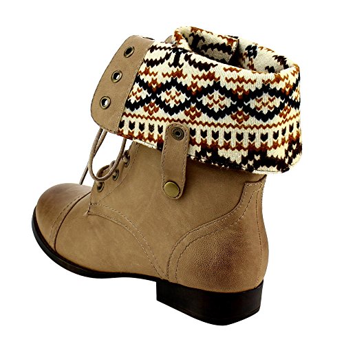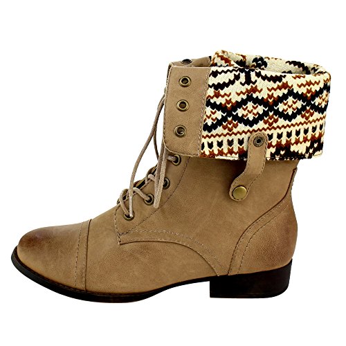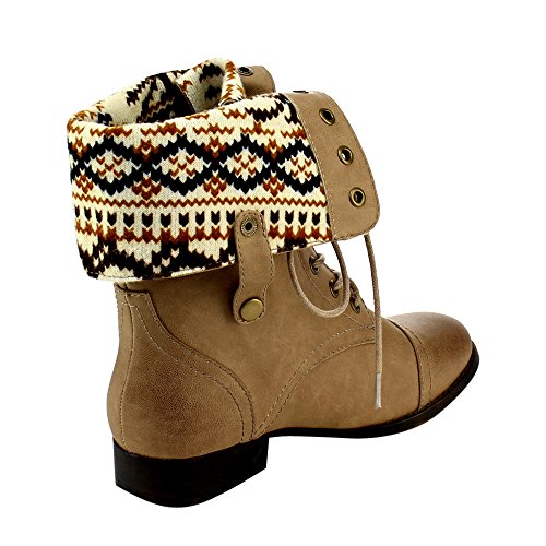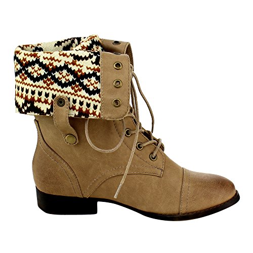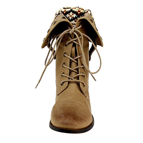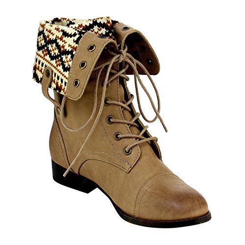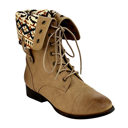 Low heels Platform measures approximately 0"Height Front lace up closure Cloesd Toe, Round, Cuffed shaft design Gromments button hole Wearing this trendy mid calf boots in the public will make you a fashion tidal this season.Featuring smooth faux leather, sweater coller design, retro gromments, flat heels. Finished by durable outsole and front lace up closure. 0 |
