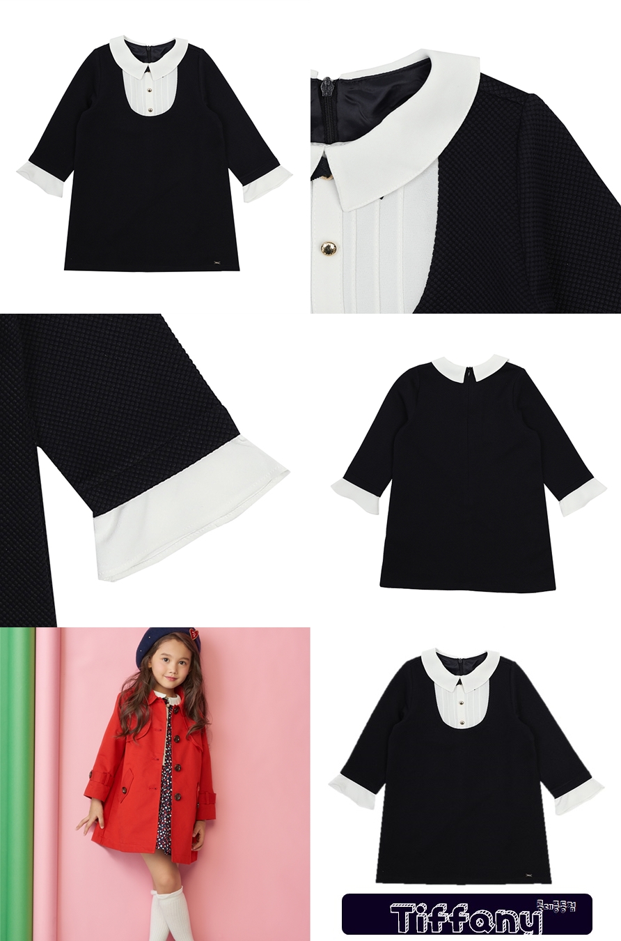 소매와 칼라의 화이트 배색으로 단정하면서 깔끔한 이미지를 주어 신학기 착장에 잘 어울리는 원피스 입니다.